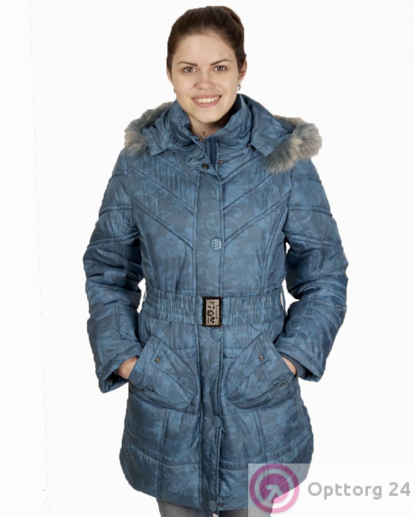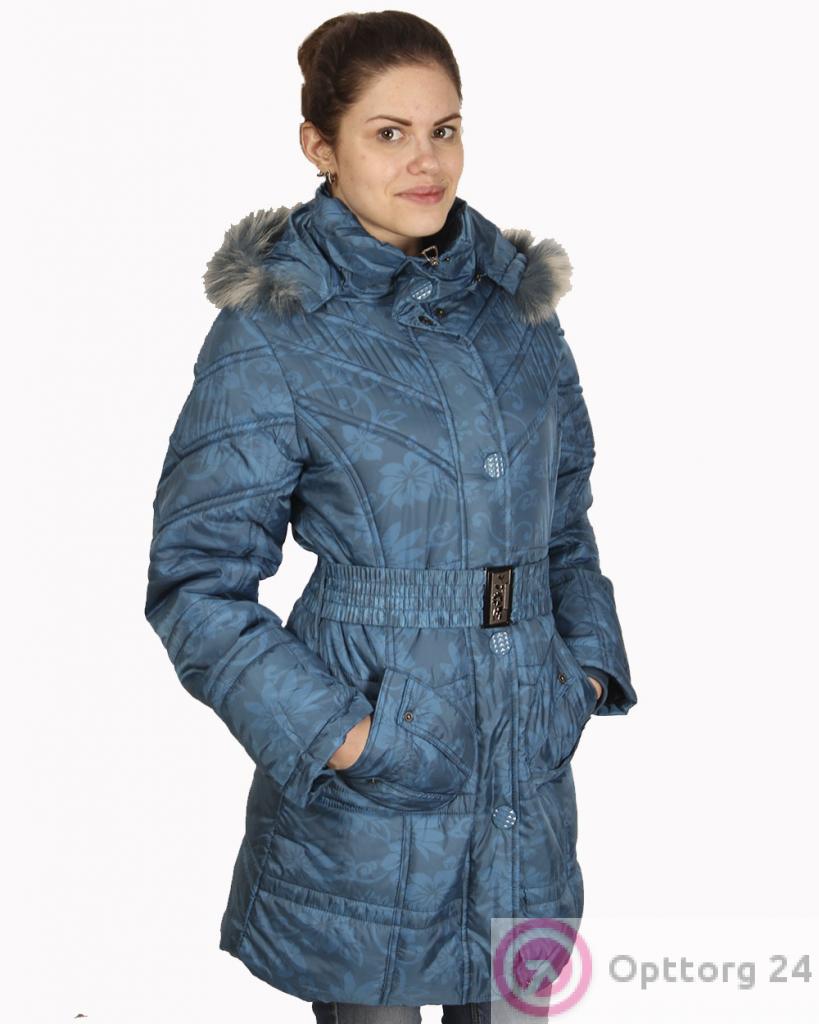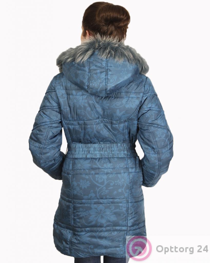 Женский пуховик голубого цвета с узором в виде цветов. оптом
