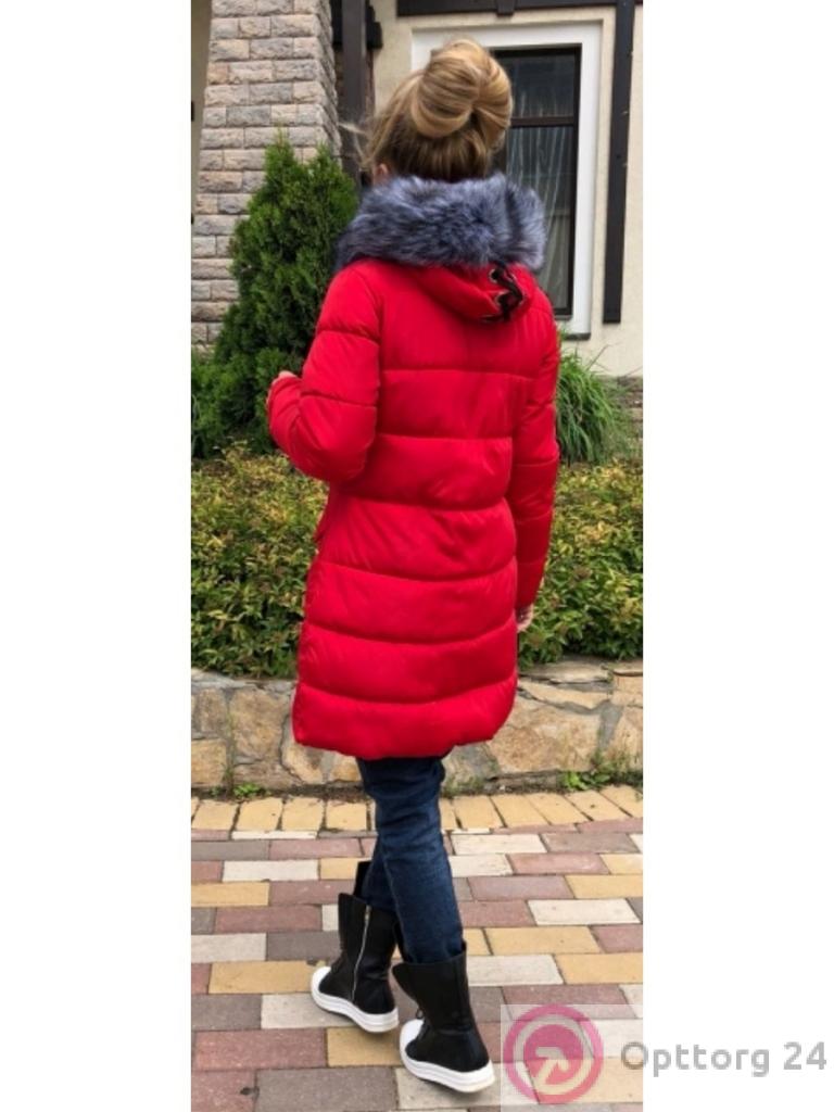 Малиновый пуховик на зиму имеет широкую молнию и капюшон с мехом. Теплая и стильная модель.