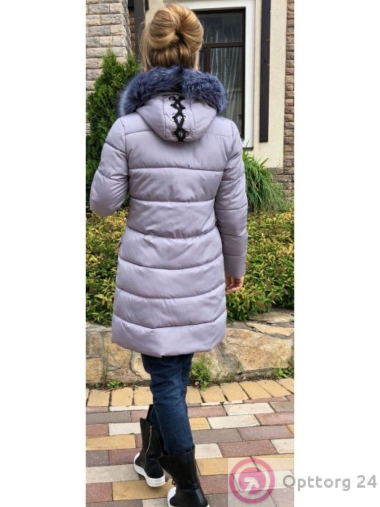Женский пуховик серого цвета со шнуровкой оптом