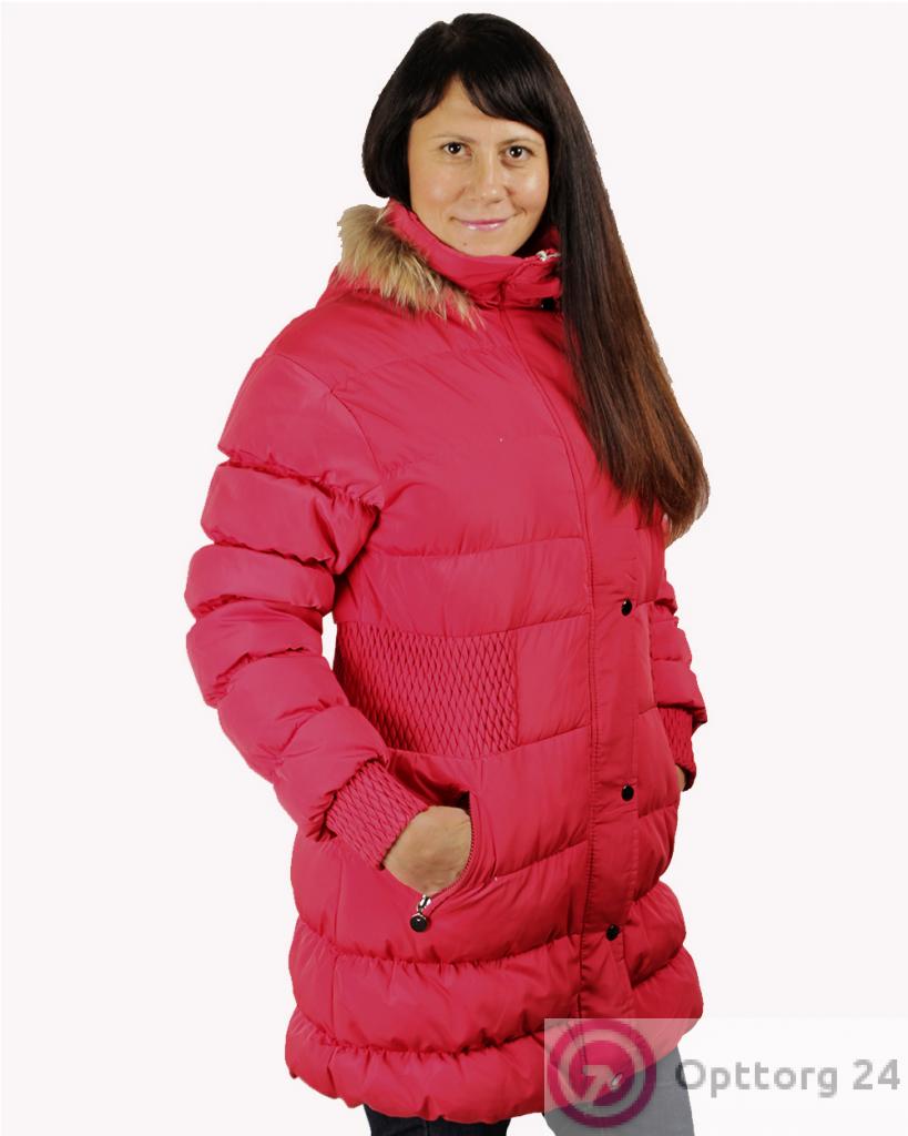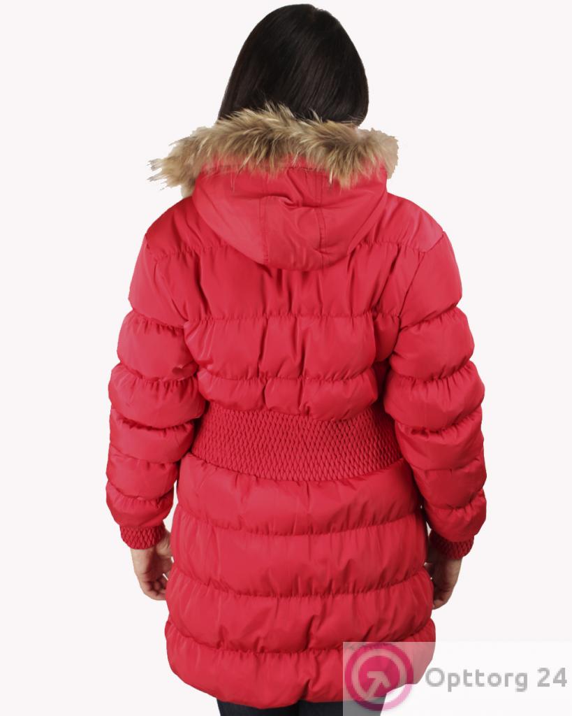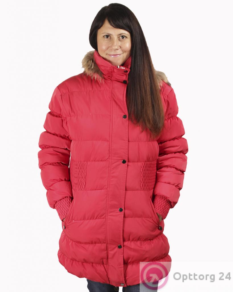 Женский пуховик красного цвета (Набивка пух) с мехом (48-58) оптом