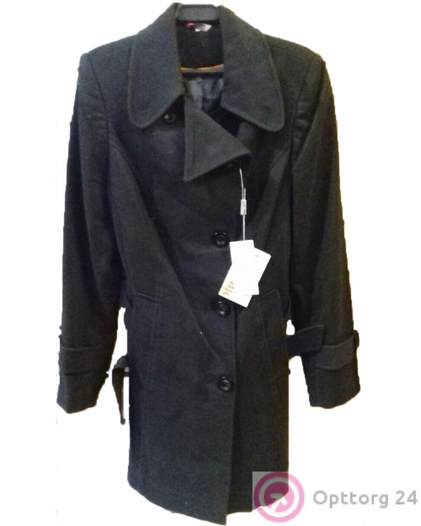 Женское пальто черного цвета с длинным воротом. оптом