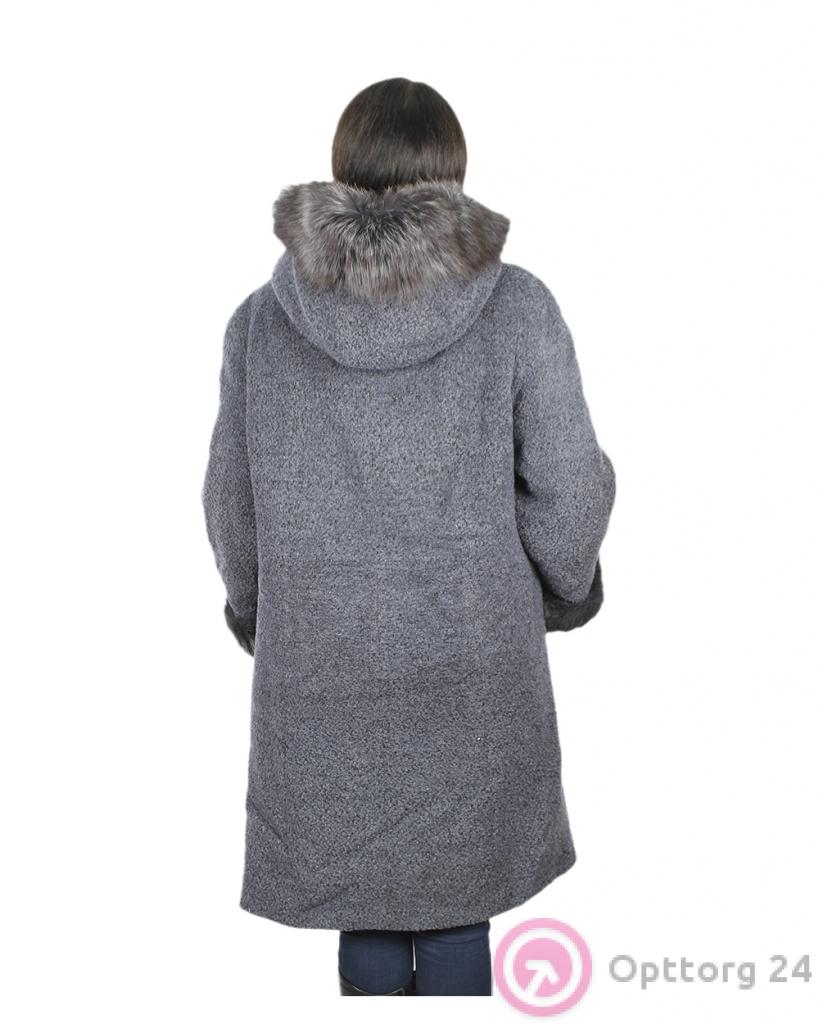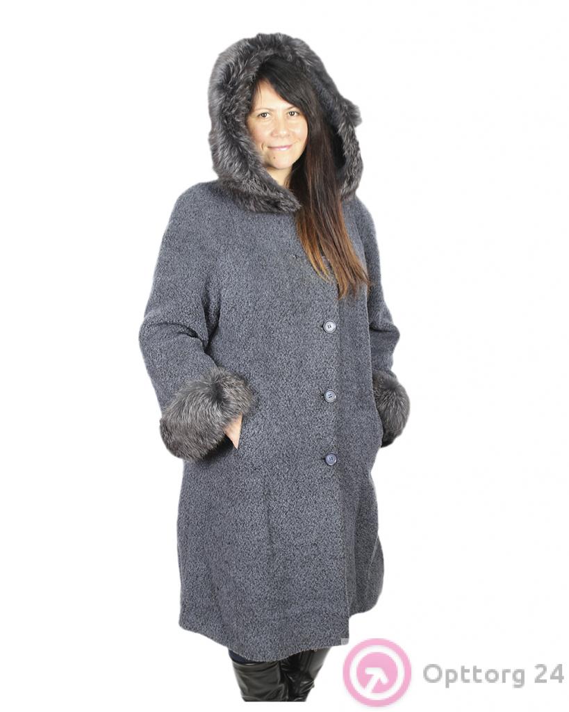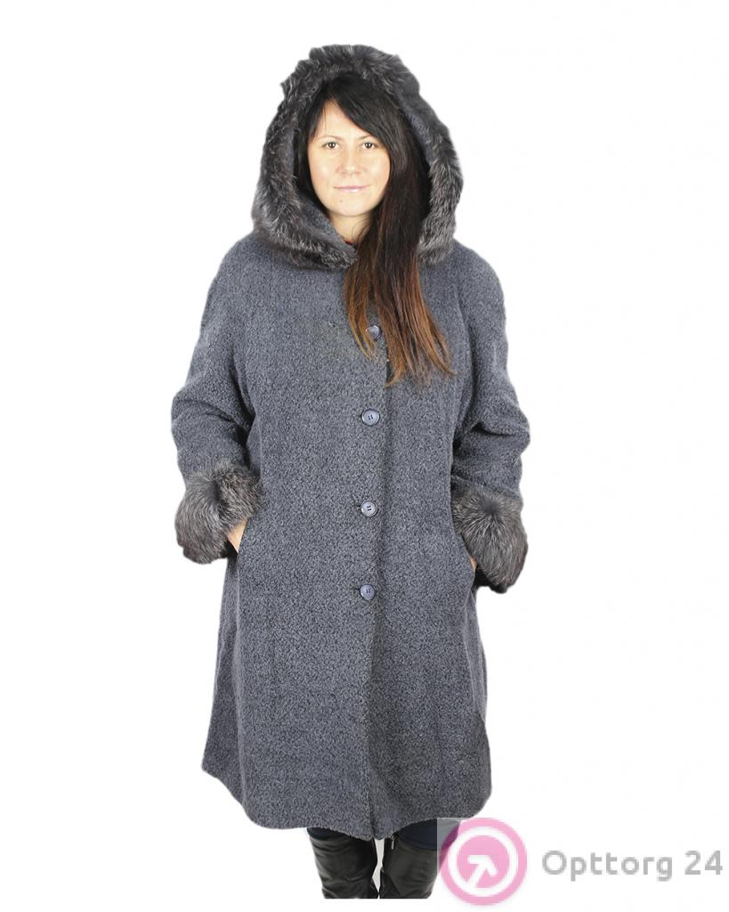 Женское пальто однотонное тёмно-серого цвета с капюшоном. оптом