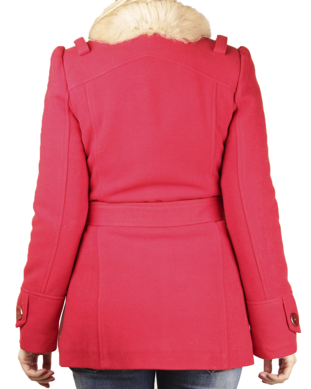 Красное милое пальто, очень яркая модель не оставит без внимания в самый пасмурный день, Воротник, выполненный из искусственного меха, придаст легкую игривость и привлекательность.