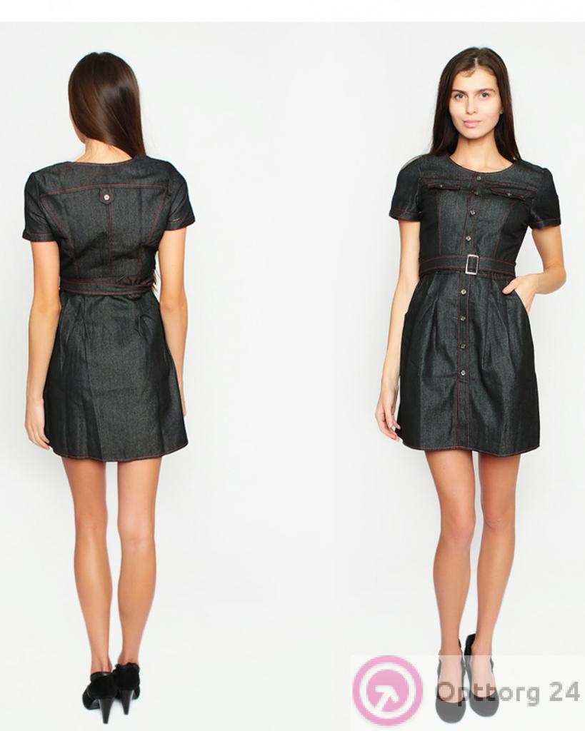 Женское платье цвета чёрной джинсы с красной строчкой. оптом
