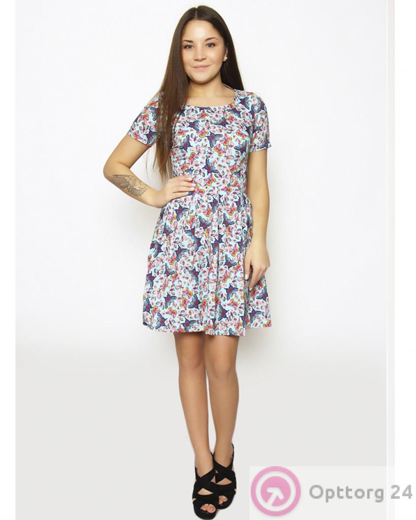Женское платье голубого цвета с принтом в виде бабочек. оптом