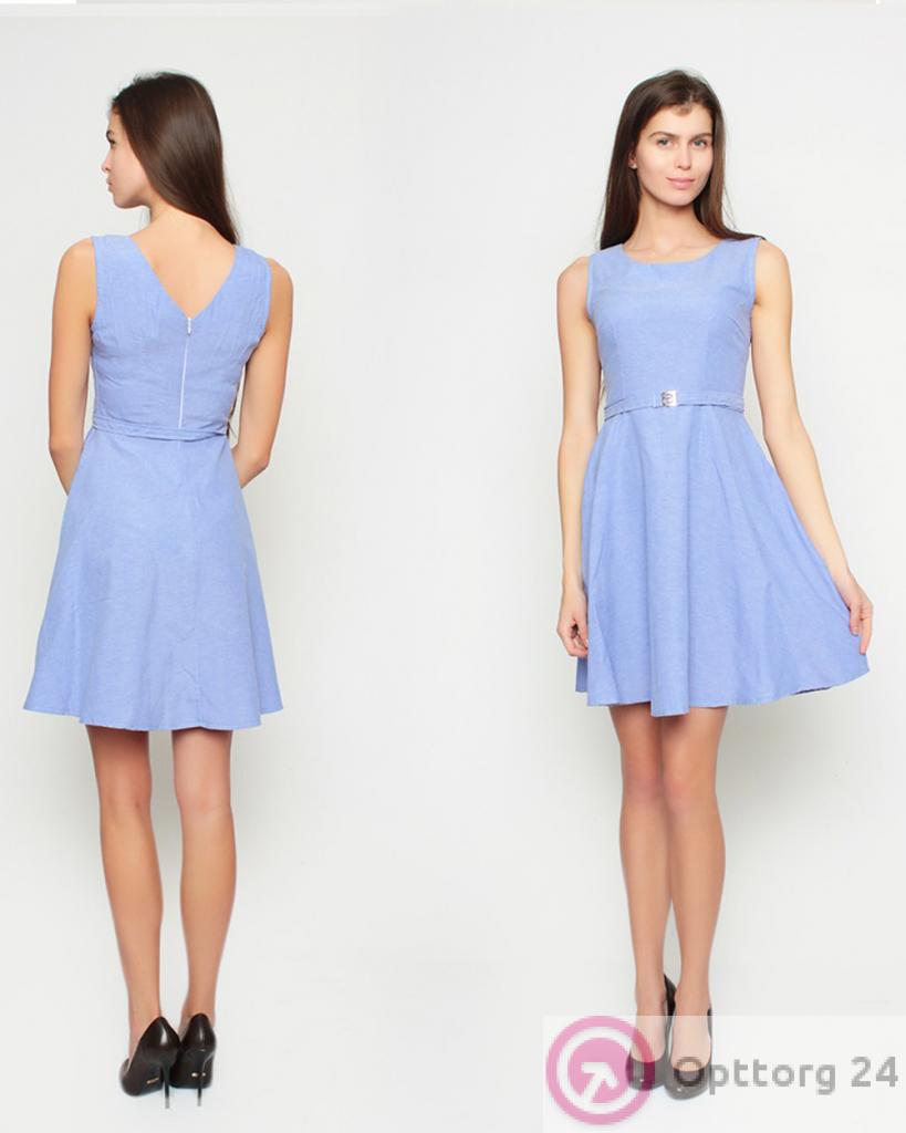 Женское платье голубого цвета с застёжкой на спине. оптом