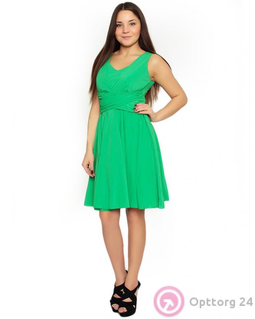 Женское платье насыщенно-зелёного с пересекающимся поясом оптом