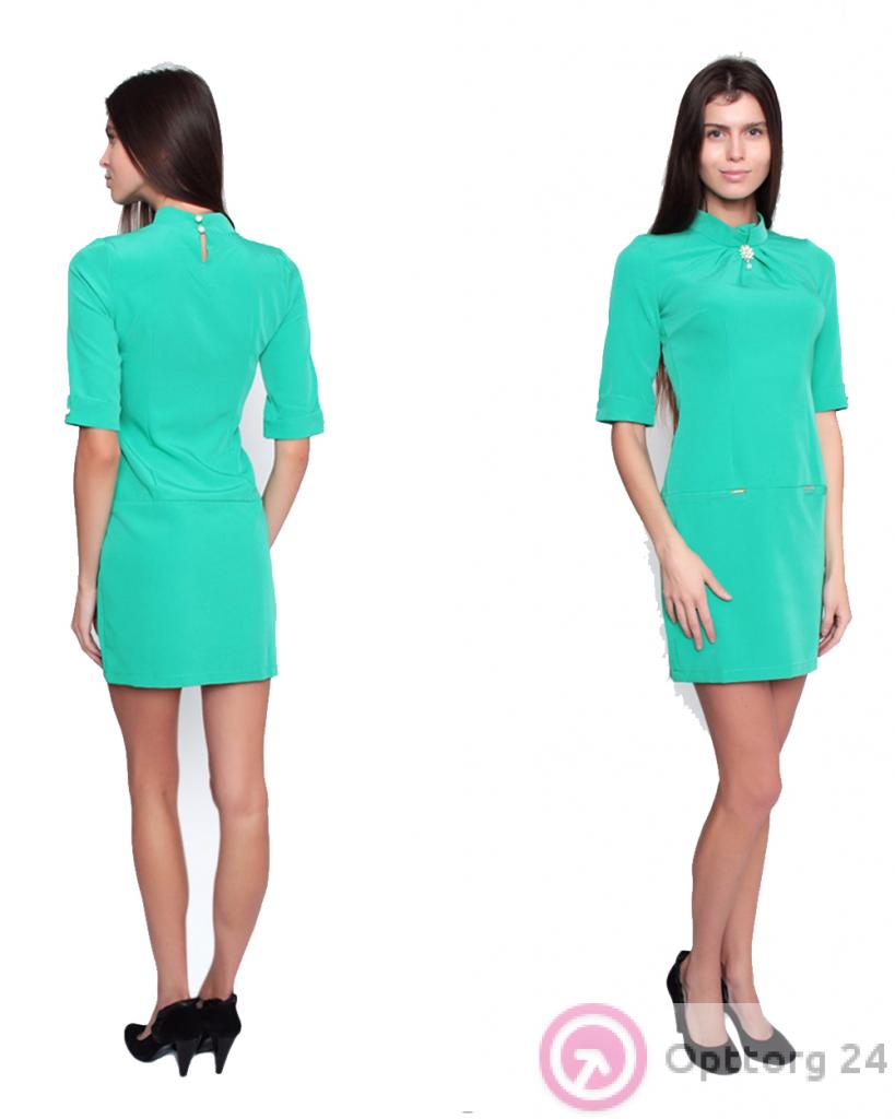 Женское платье прямого кроя с рукавом в 3/4 ментолового цвета. оптом