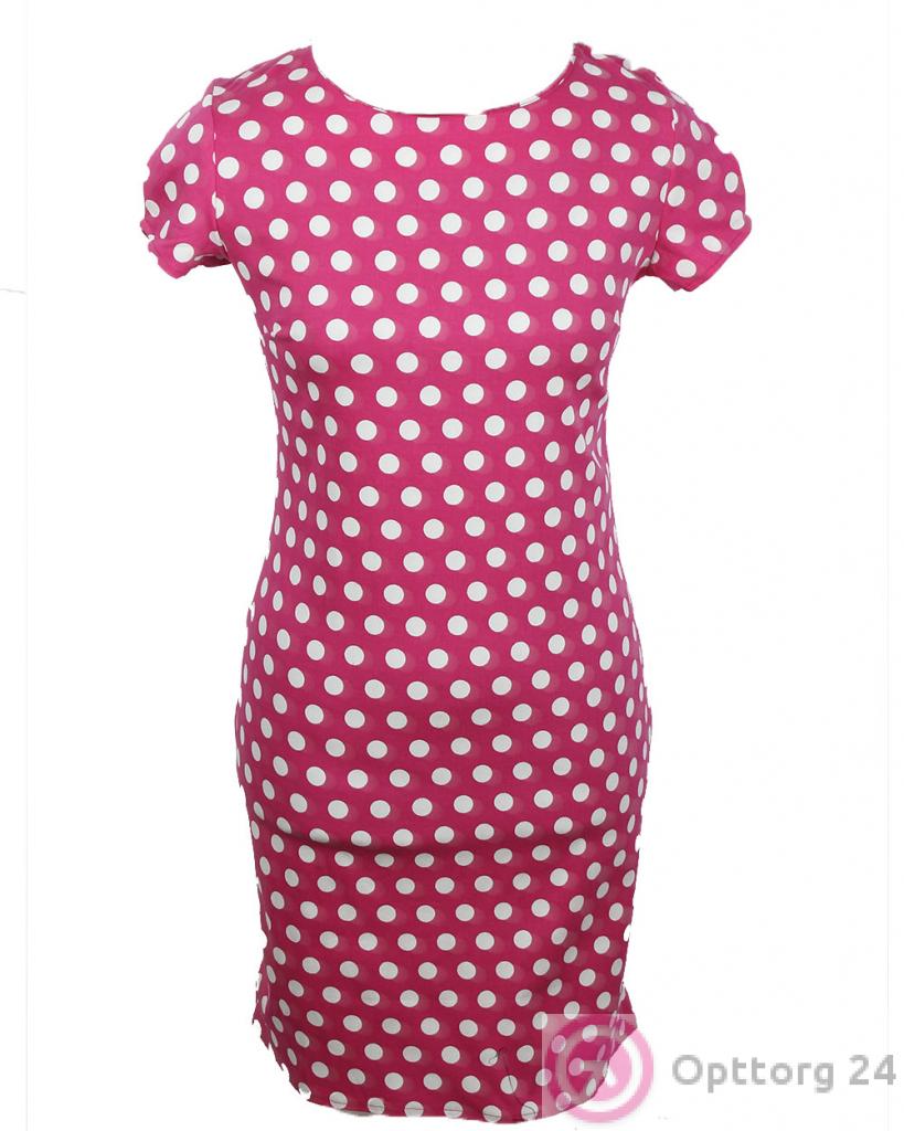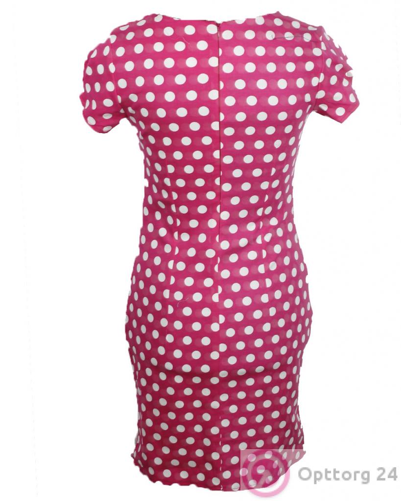 Платье женское с округлым вырезом и с укавом на 3/4 модель светло-розового цвета в белый горох.