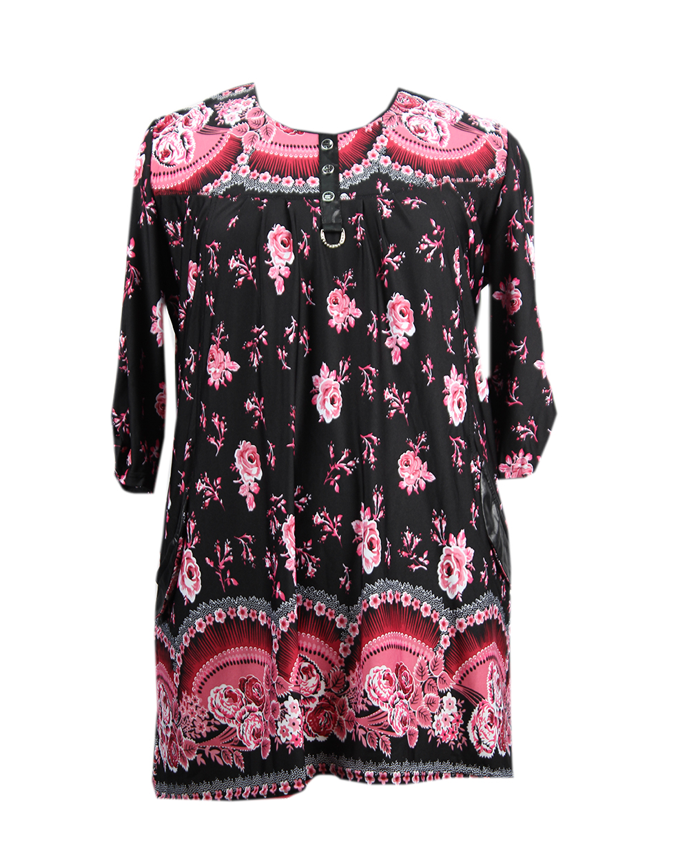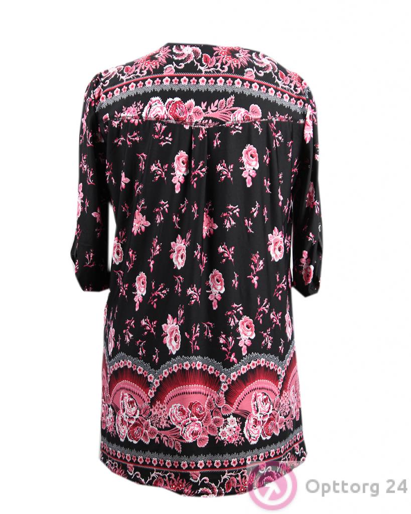 Женское платье свободного кроя черное с розовыми цветами оптом