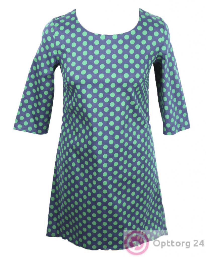Женское платье темно-синего цвета в зеленый горох. оптом