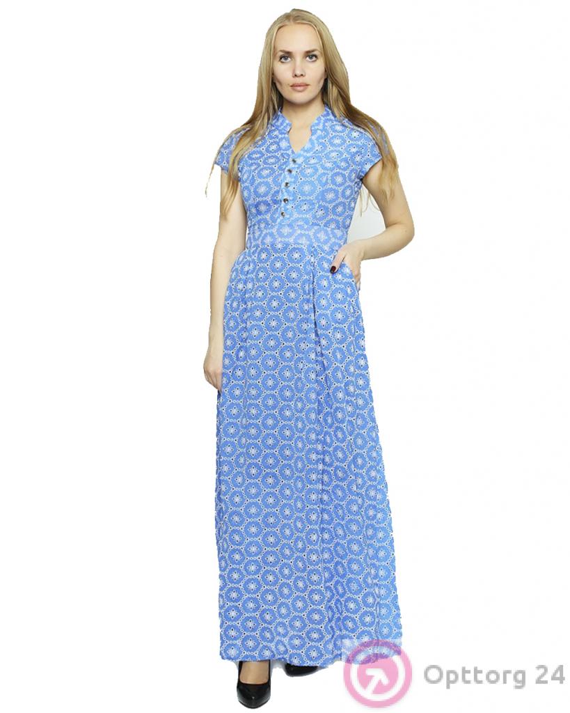 Женское платье в пол голубого цвета с пуговицами на передней части модели. оптом