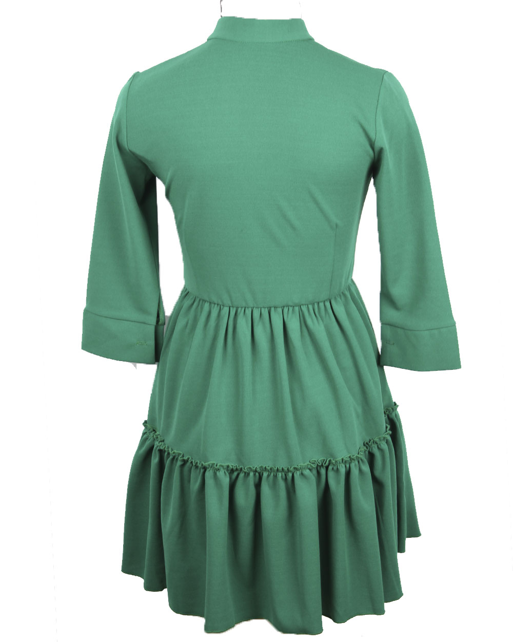 Женское платье с юбкой "Волан" с рукавом 3/4 и золотистыми резными пуговицами.
