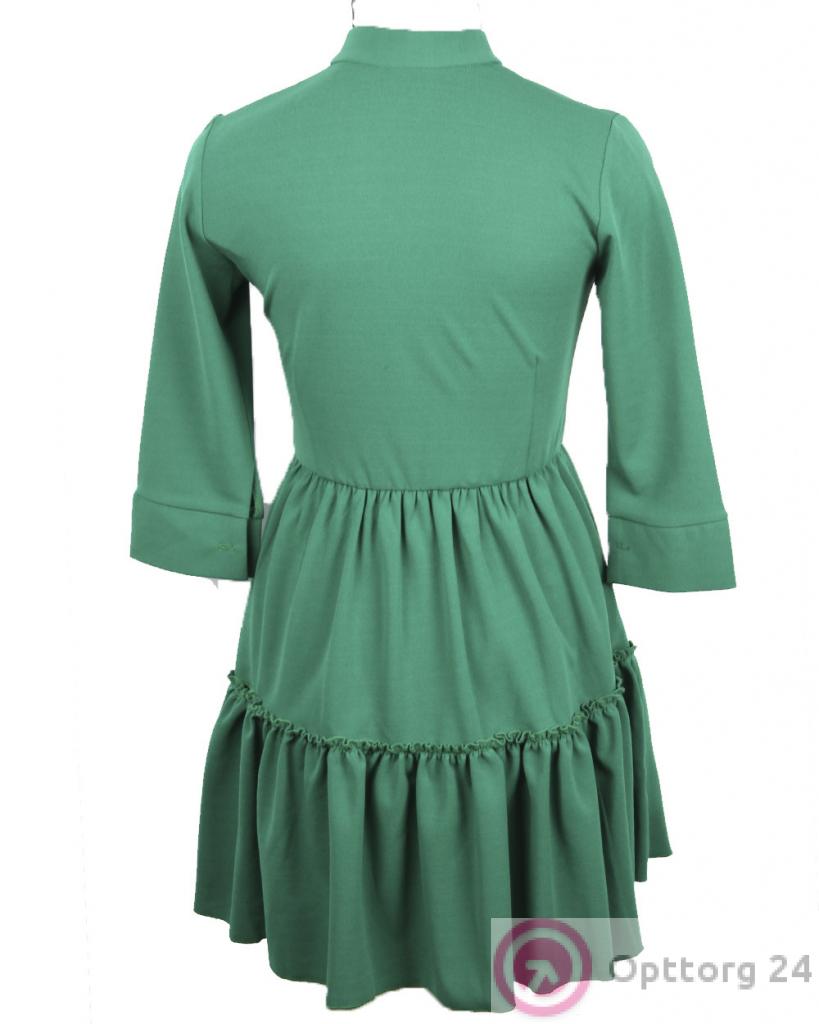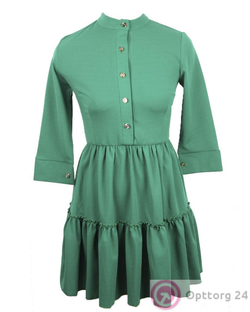 Женское платье зеленого цвета с золотистыми пуговицами. оптом