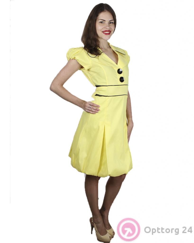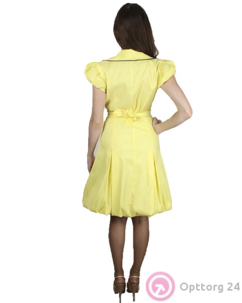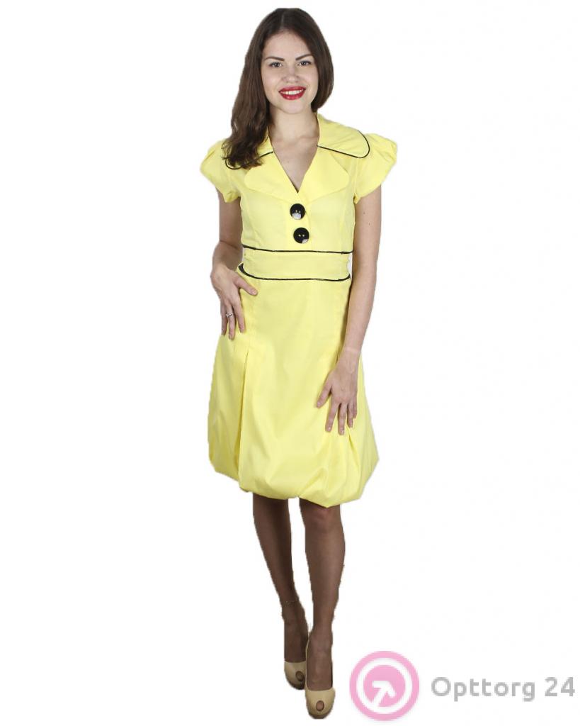 Женское платье жёлтого цвета с черной прошивкой и большими пуговицами. оптом