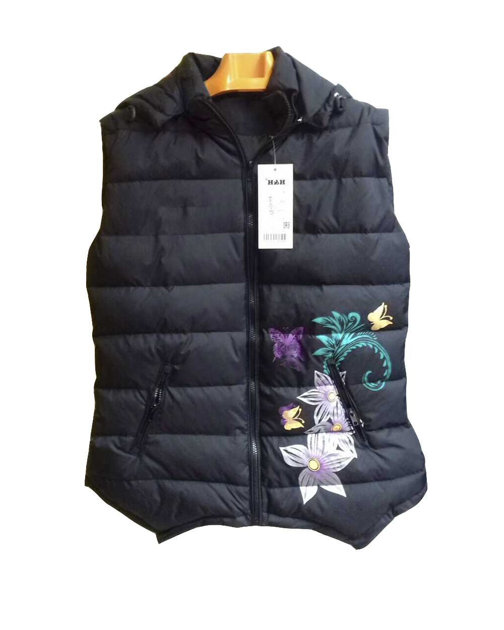 Жилет женский черного цвета с цветами оптом