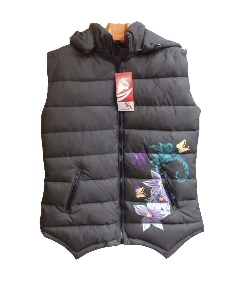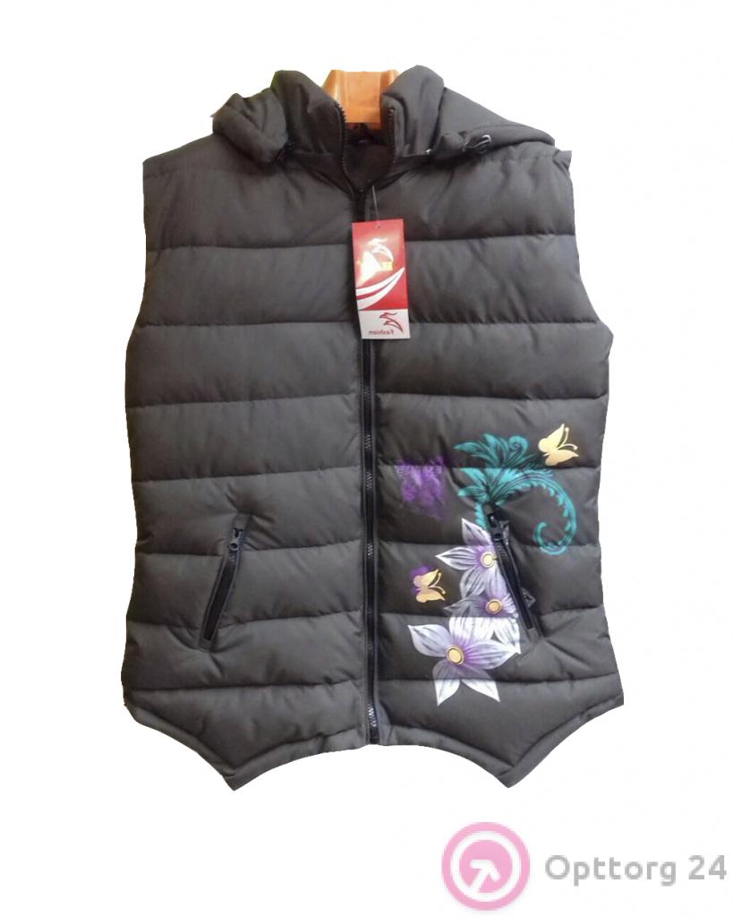 Жилет женский черный с цветами оптом