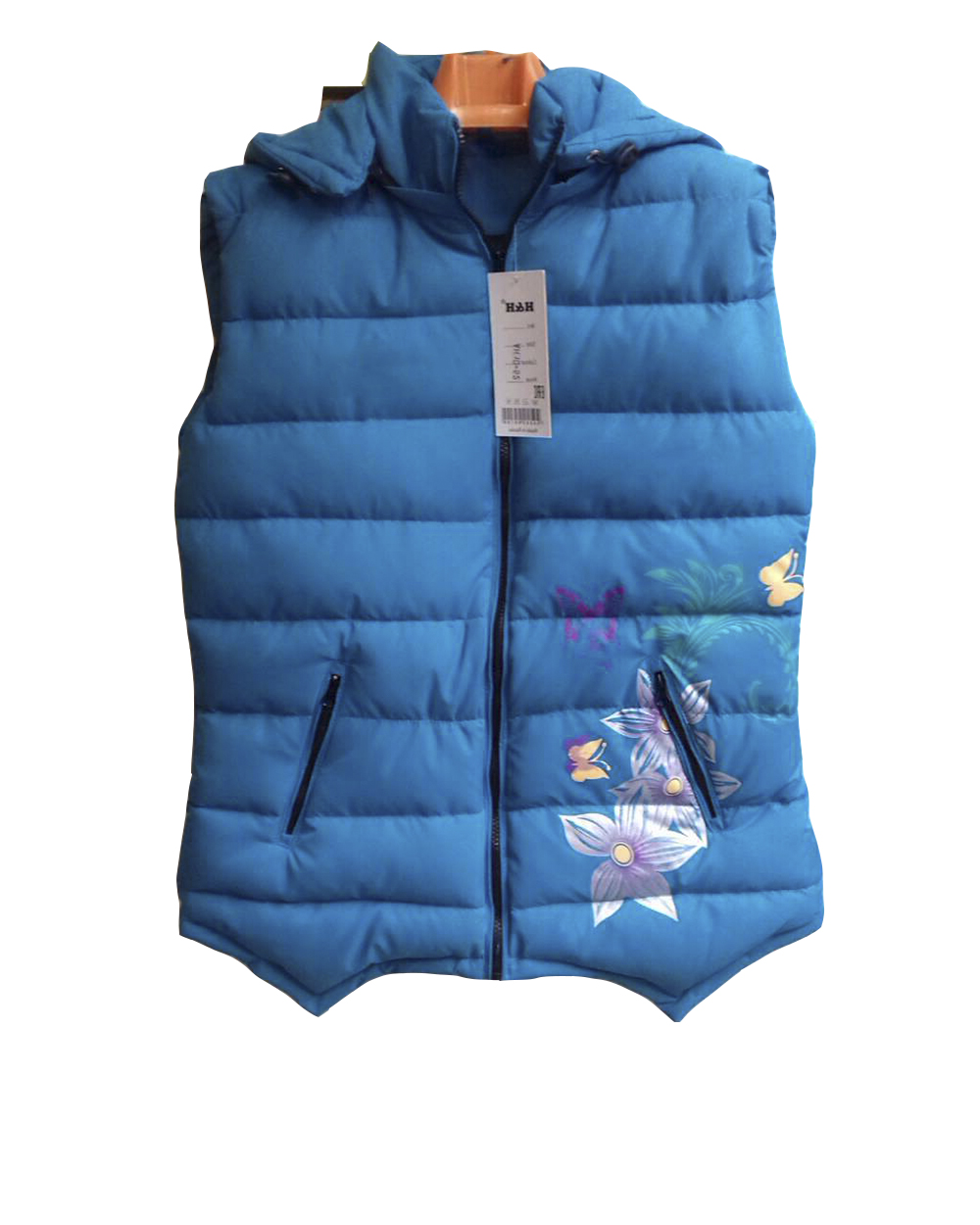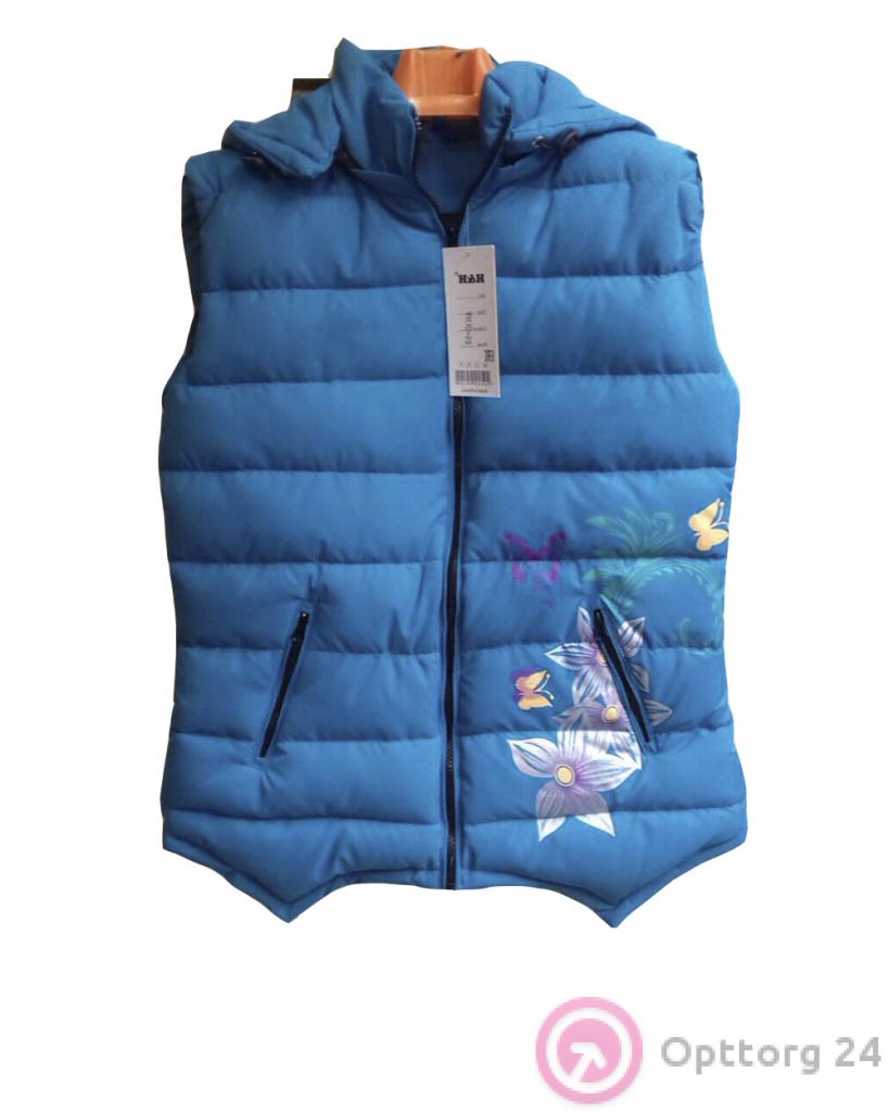 Красочная модель с оригинальным рисунком в виде цветов. Жилет застегивается на молнию и имеет два боковых кармана.