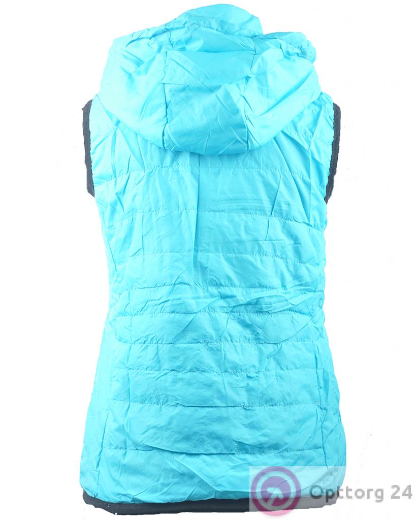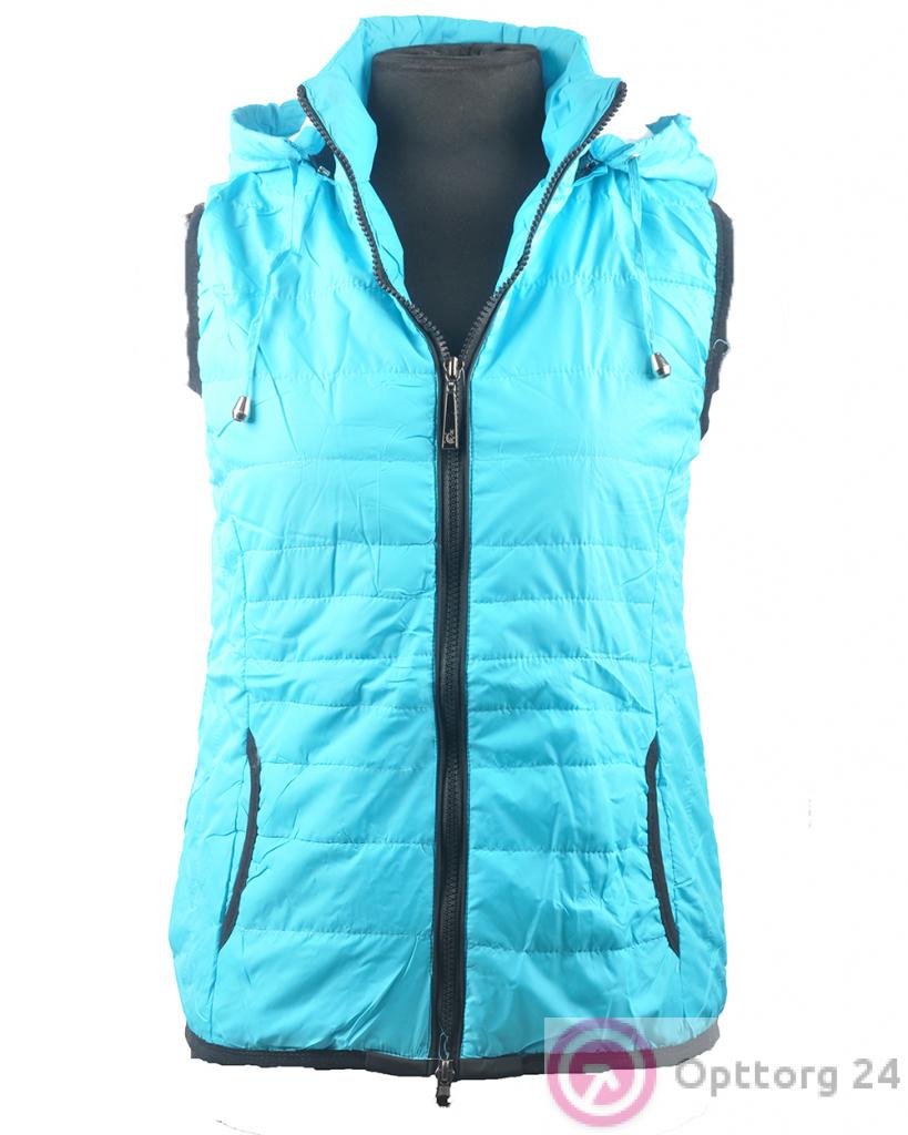 Жилет женский на синтепоне голубой с черным декором оптом