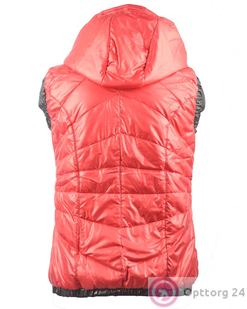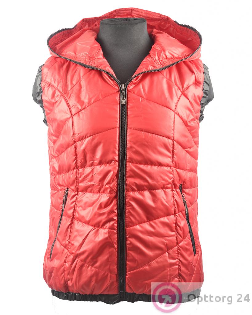 Жилет женский на синтепоне стильный красный с черным декором оптом