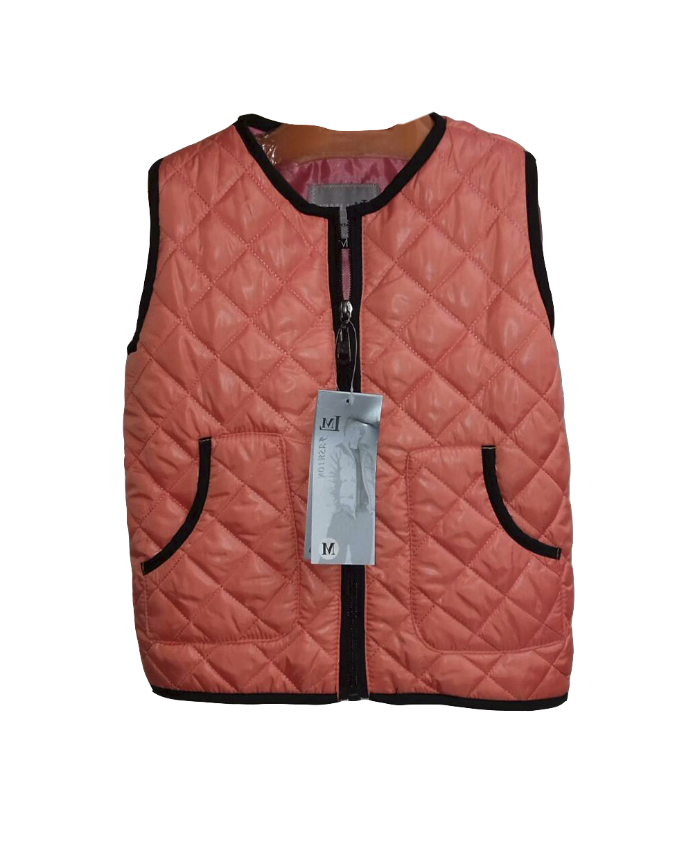 Модель простегана узором в виде ромбиков, спереди два накладных кармана. Застёгивается жилет на молнию.