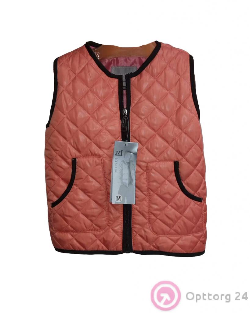 Жилет женский оранжевого цвета с прострочкой ромбик оптом