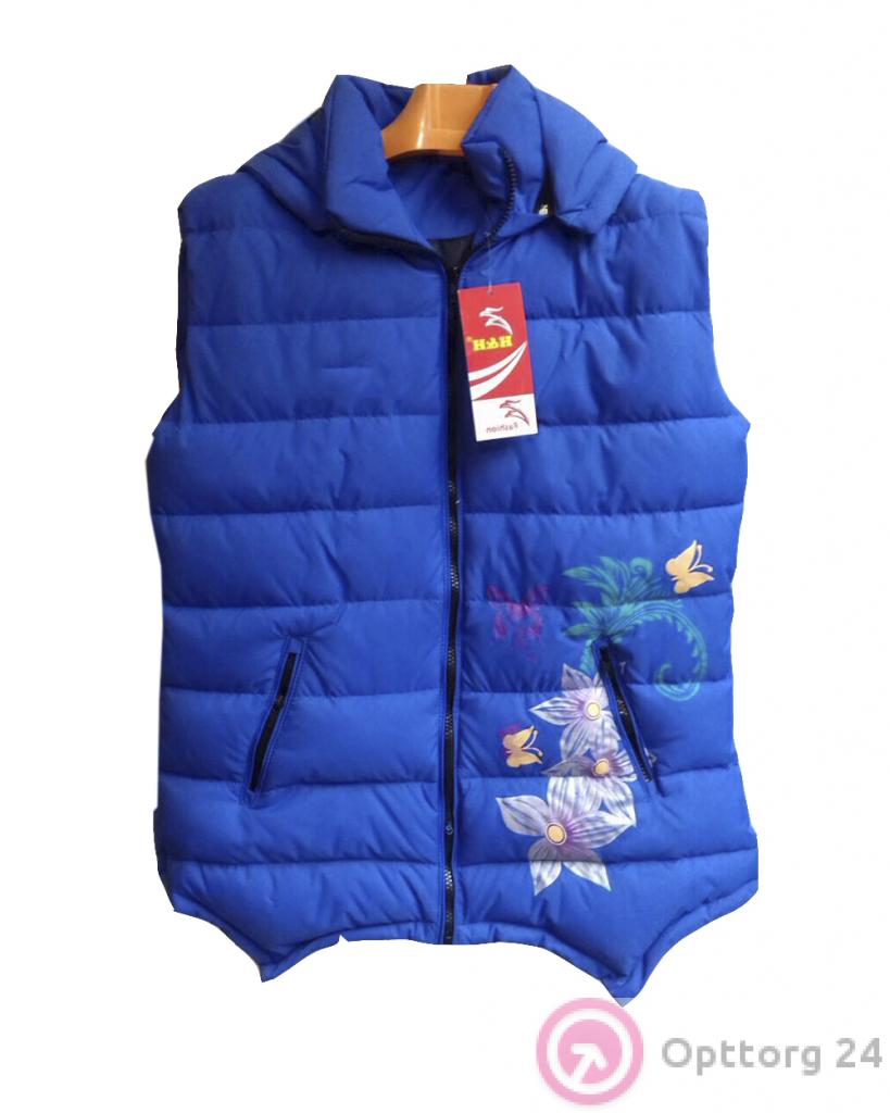 Жилет женский синий с цветами оптом