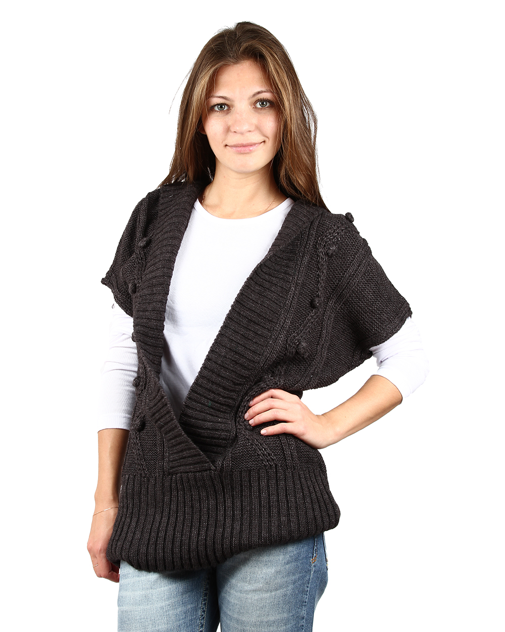 Жилет женский теплый с капюшоном цвета асфальта оптом