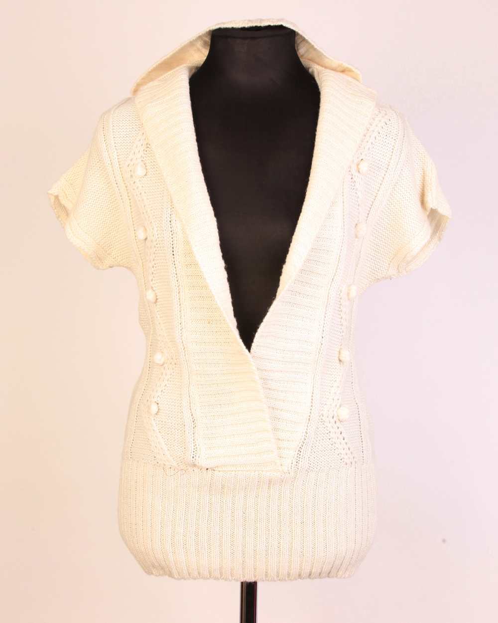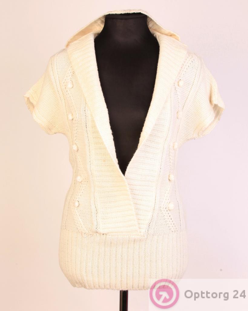 Жилет женский вязаный кремового цвета с капюшоном оптом