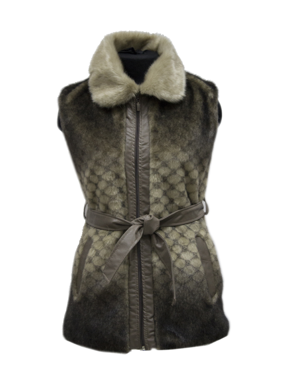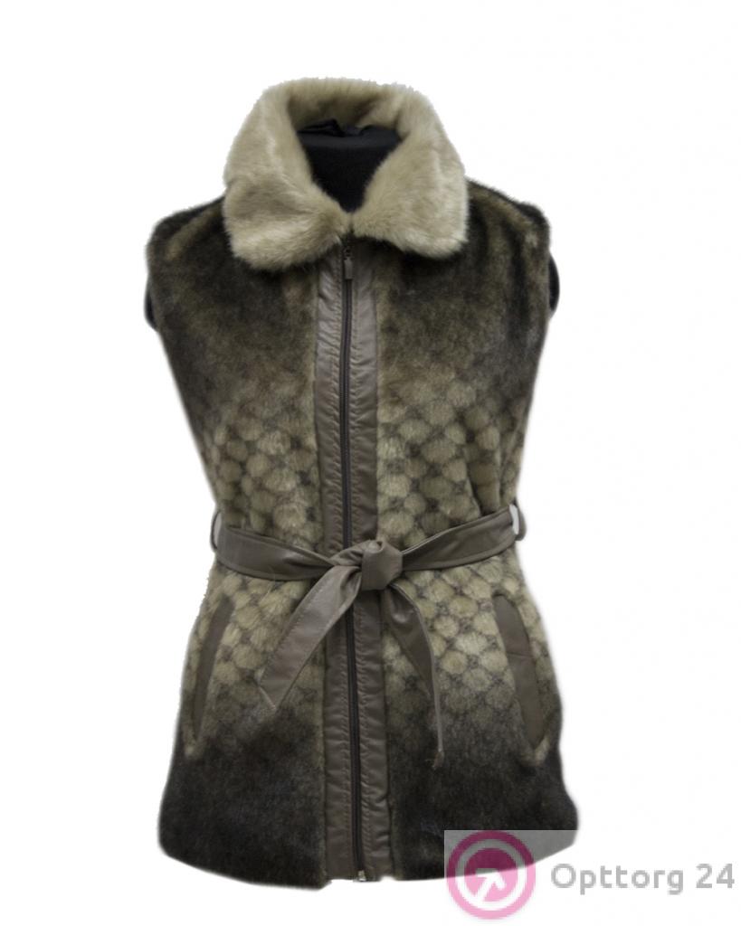 Отличная жилет с застежкой на молнии. Вставки из искучтвенной кожи вдоль молнии и на карманах, а также бежевый пояс очень освежают и придают нарядный вид изделию. Модель будет отлично смотреться в сочетании с одеждой разных стилей.