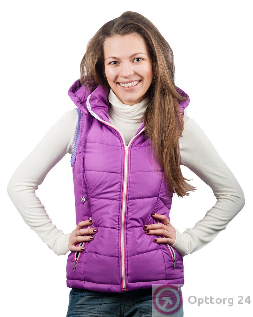 Жилетка женская на синтепоне фиолетовая с розовым декором оптом