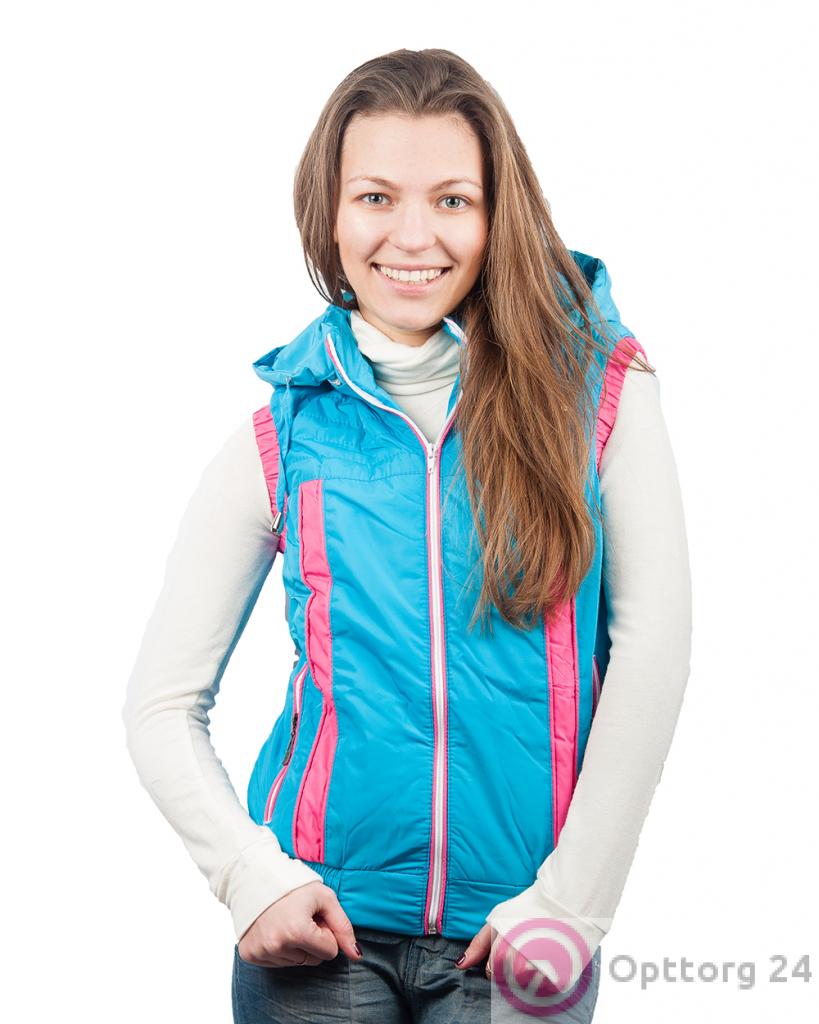Жилетка женская на синтепоне голубая с розовыми вставками оптом