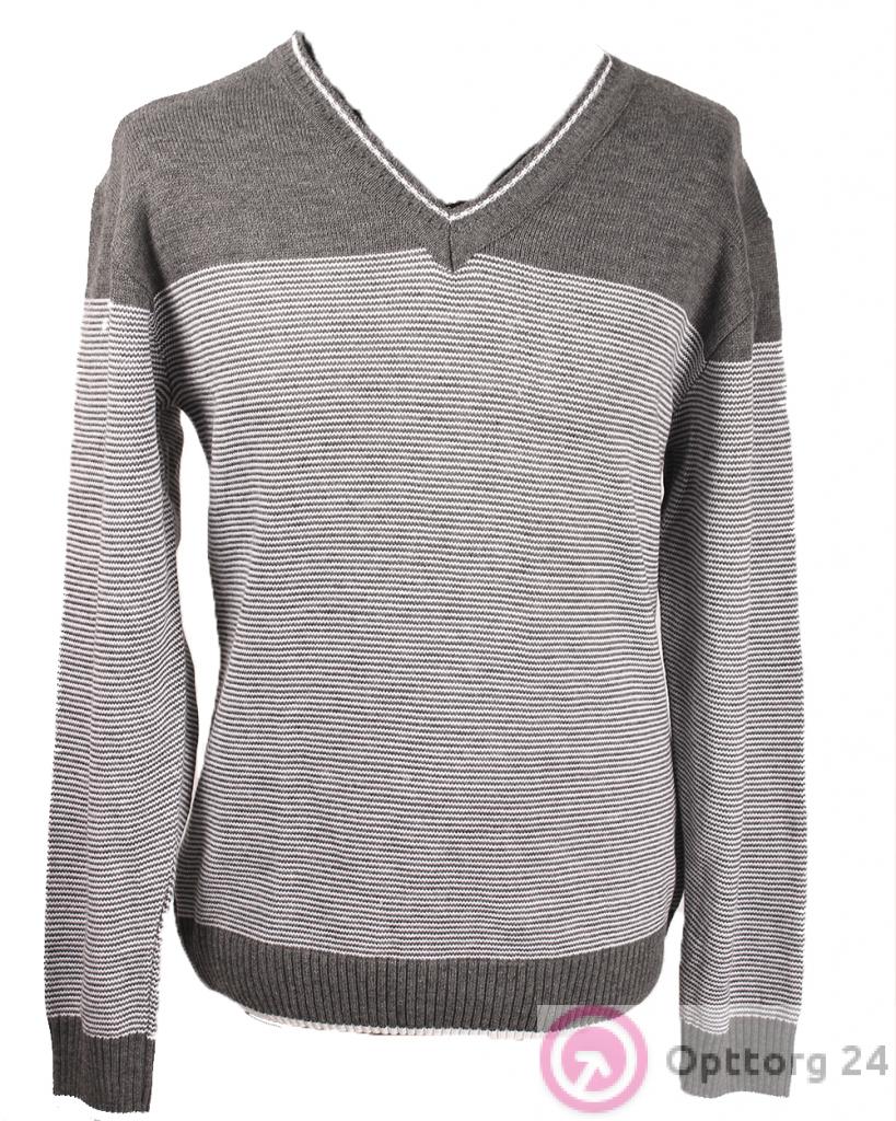 Джемпер мужской шерстяной серый в мелкую полоску. оптом