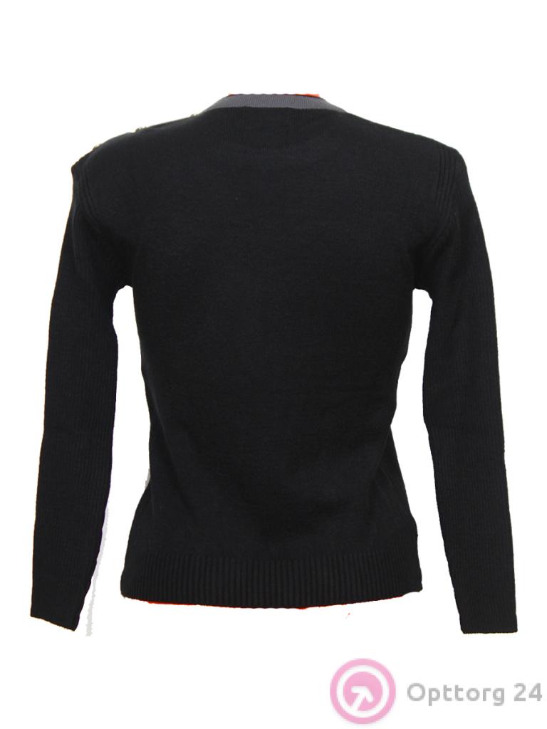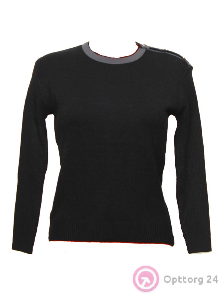 Джемпер женский черный с пуговицами на одном плече оптом