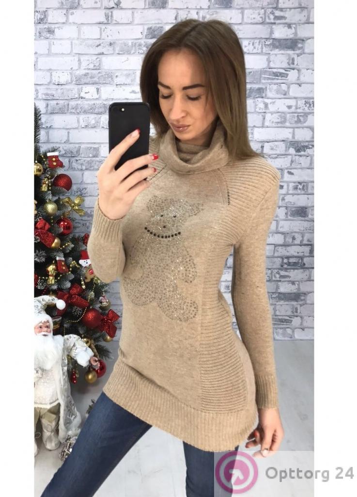 Очень приятный и удобный джемпер нежного кремового цвета. Имеет украшение в виде медведя, удлиненный крой и высокий ворот. Отличный теплый выбор для зимнего сезона