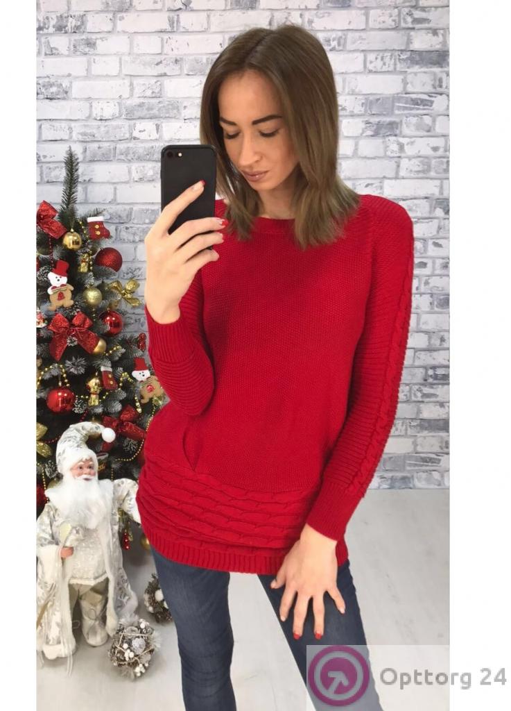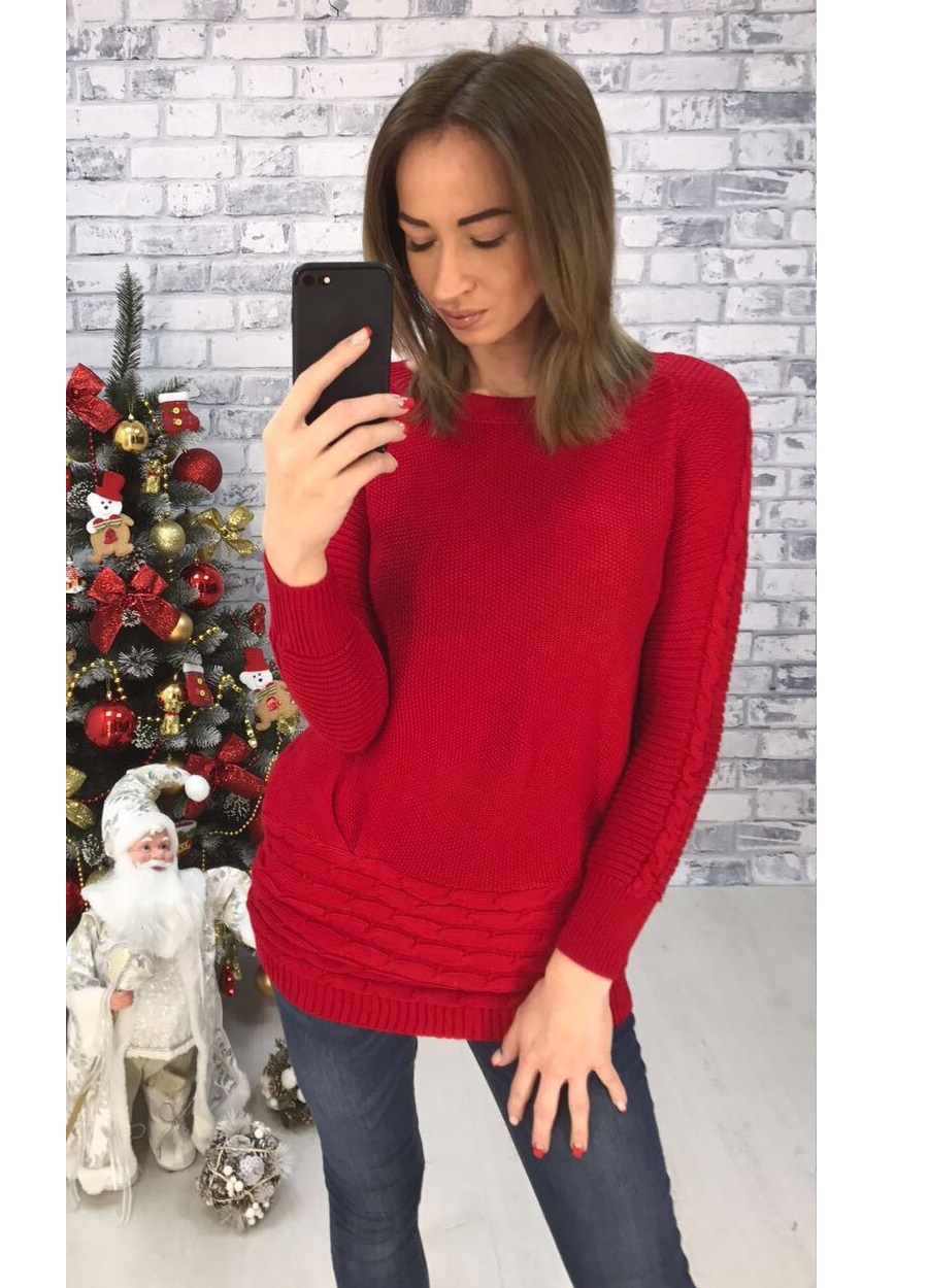 Женский джемпер вызывающего ярко-красного цвета. Мягкий теплый и удобный. Изделие имеет резинки внизу и на рукавах, а так же округлый ворот