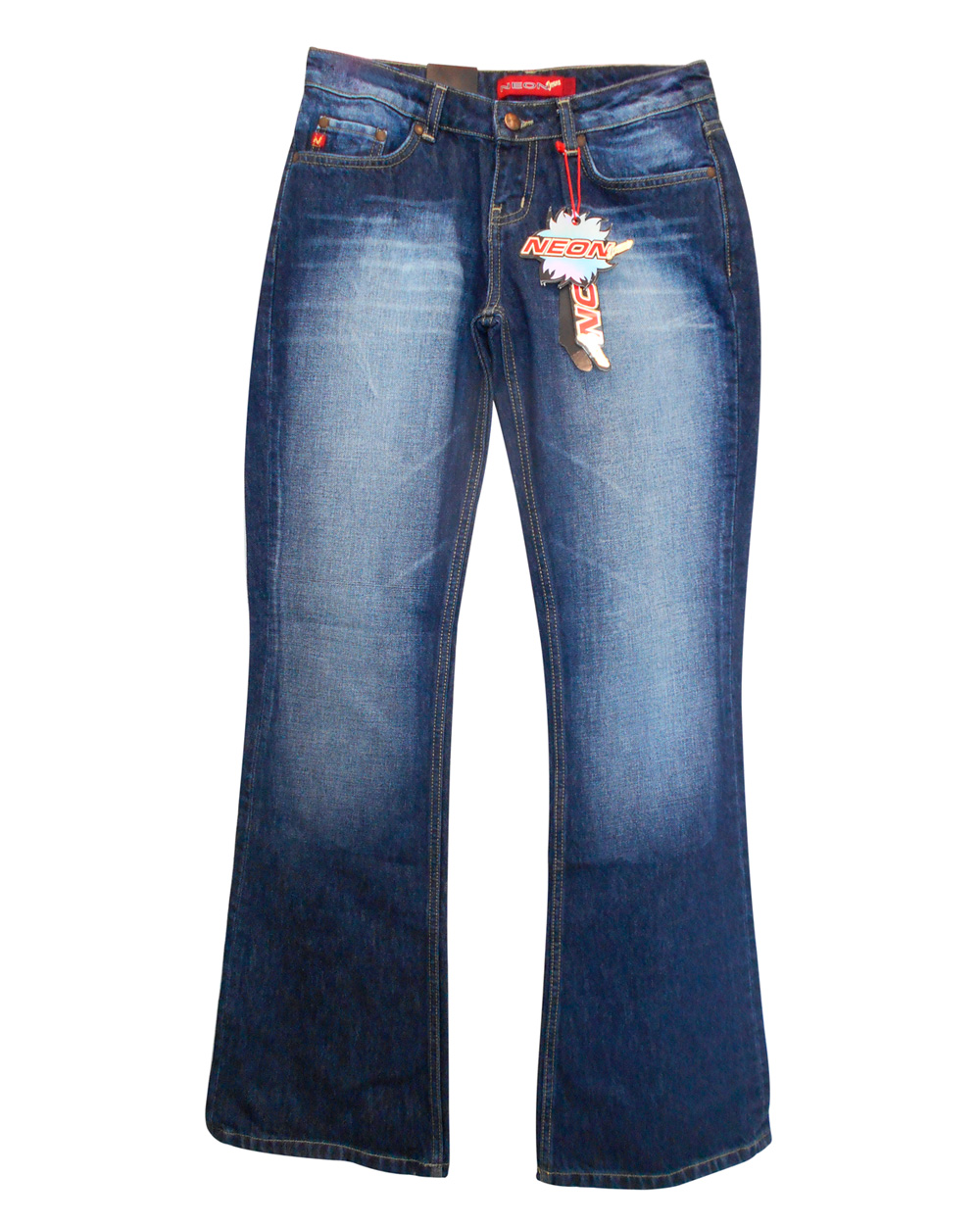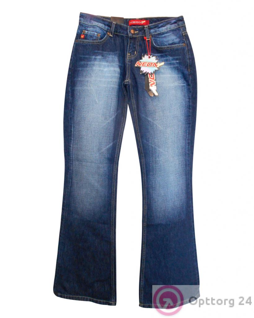 Джинсы темно-синего цвета, небольшой клеш, посадка на талии. Пять карманов, на поясе шлевки, застегиваютсяна молнию и пуговицу.