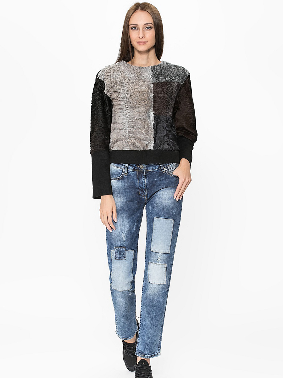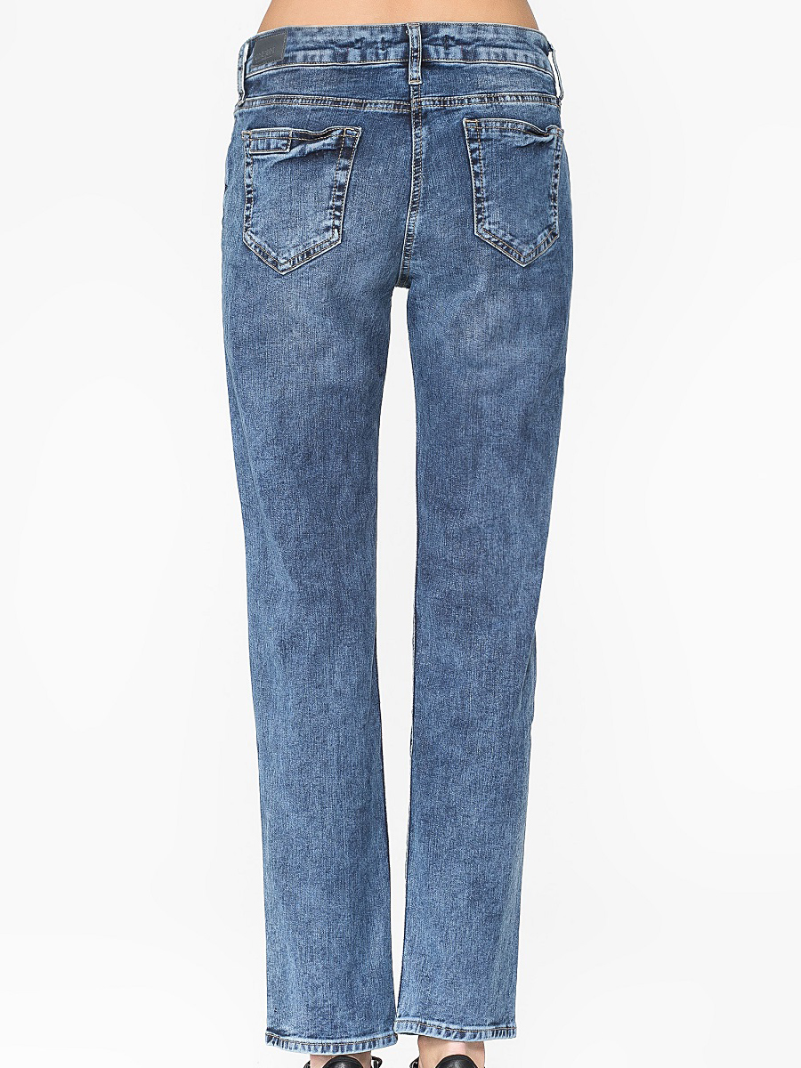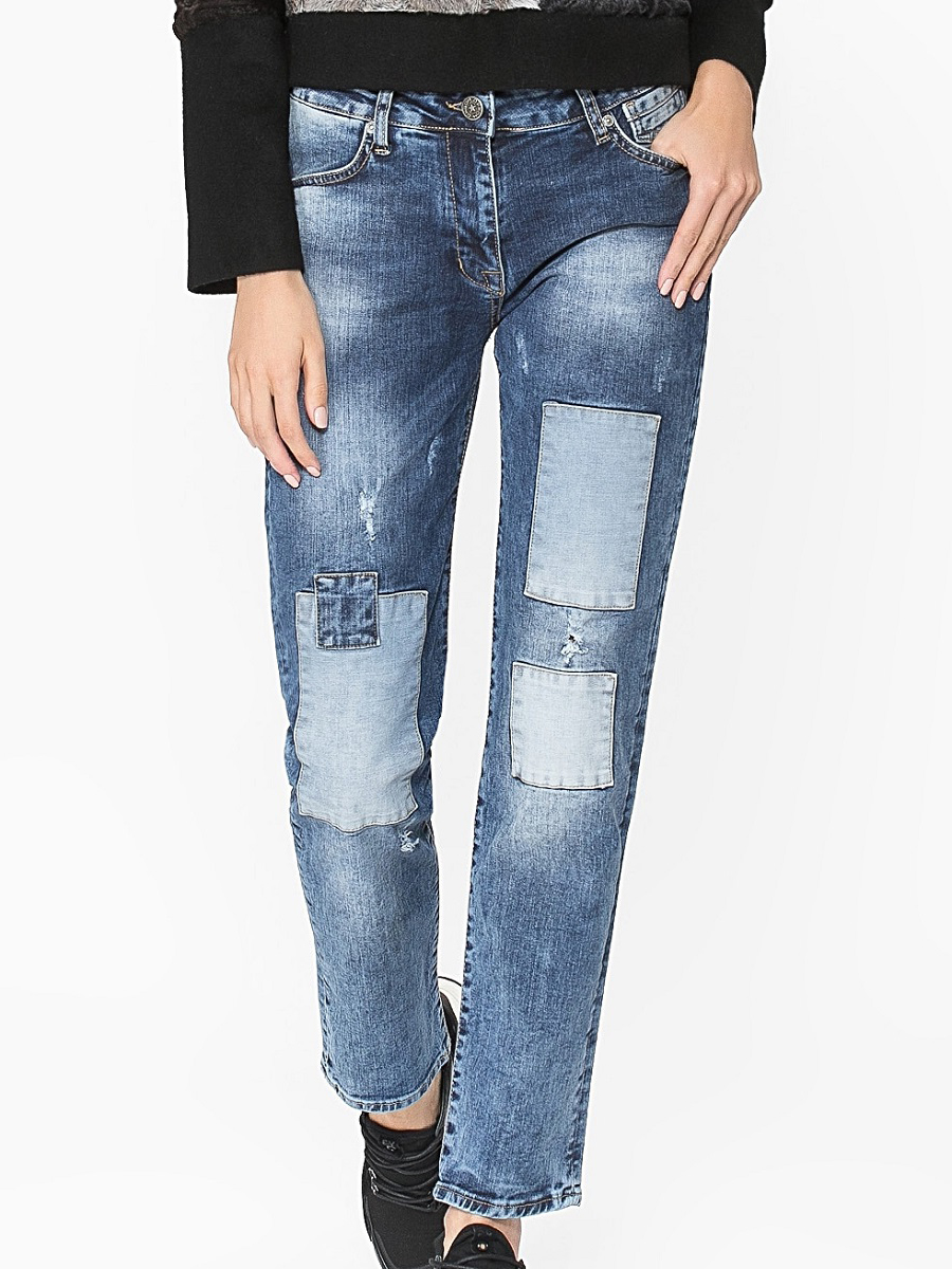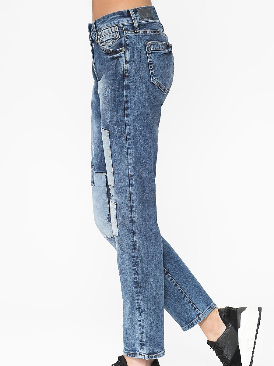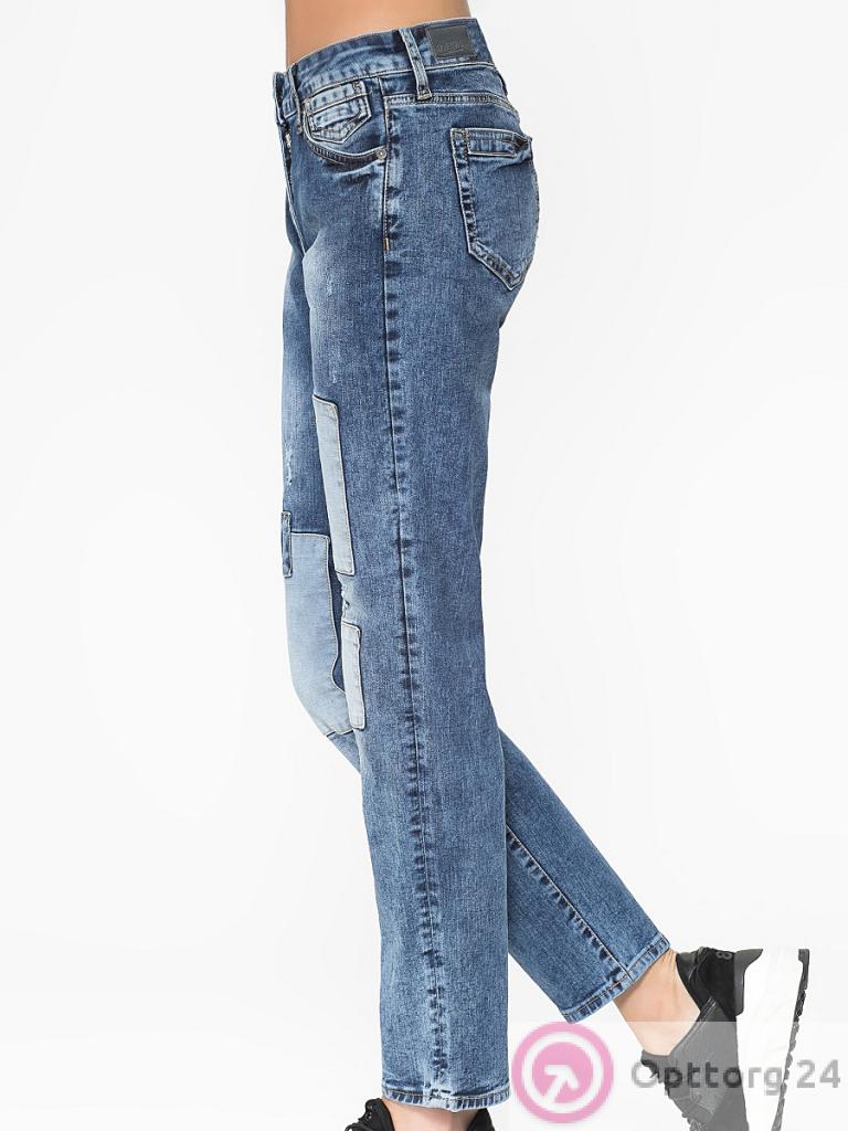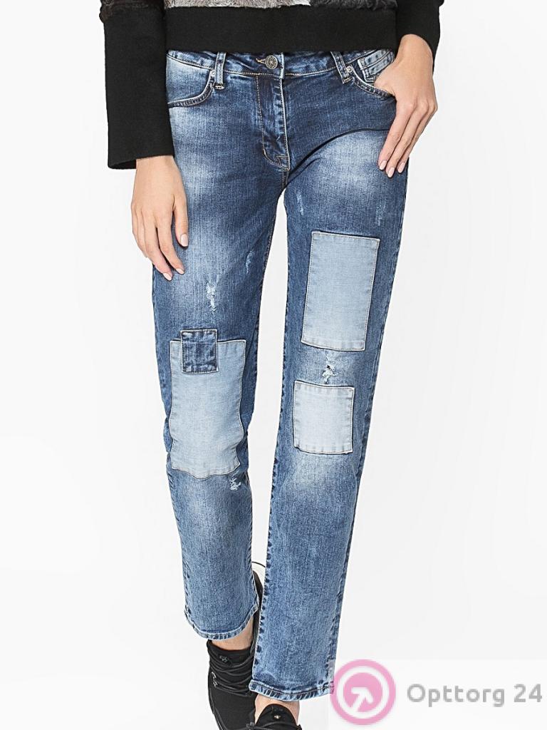 Джинсы женские синие с накладными вставками и подворотами. Очень стильные и красивые.