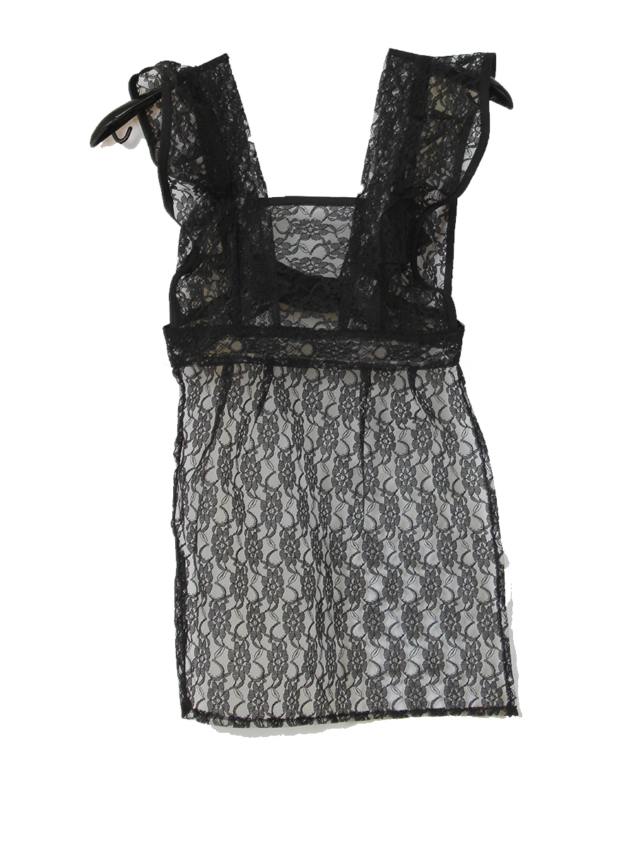 Школьный фартук для девочки черного цвета. Фактура кружевная