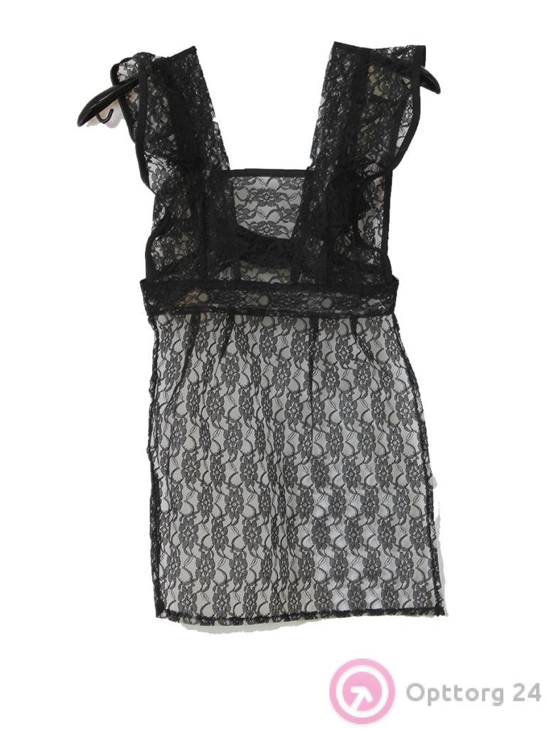 Фартук школьный для девочки черного цвета с кружевом оптом