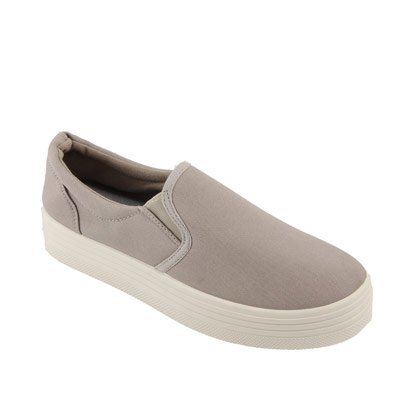 Комфортные женские кеды с резинками для регулировки объема. Модель на невысокой платформе. Цвет - бежево серый.