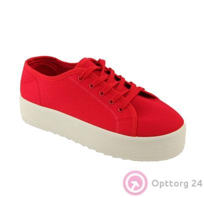 Женские кеды из плотного текстиля. Модель на платформе. Застежка - шнуровка.