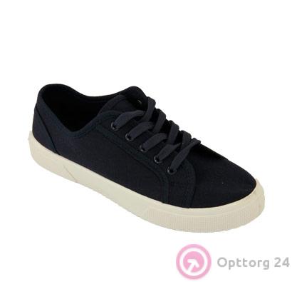 Сдержанные темно синие кеды для женщин. Модель на мягкой резиновой подошве.