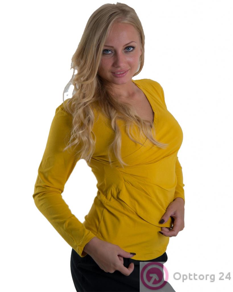 Женская кофта желтого цвета, с глубоким вырезом на запах.