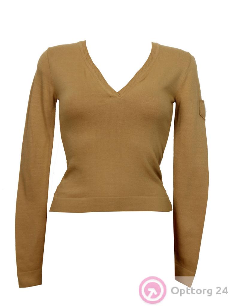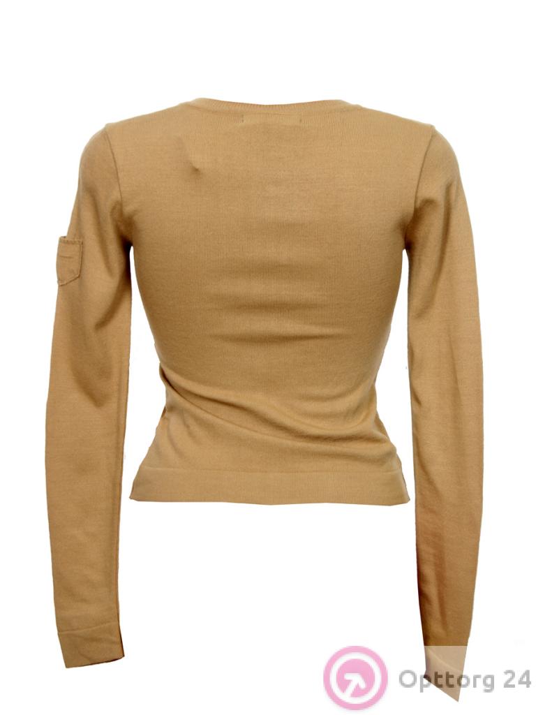 Кофта женская горчичного цвета с накладным карманом на рукаве оптом