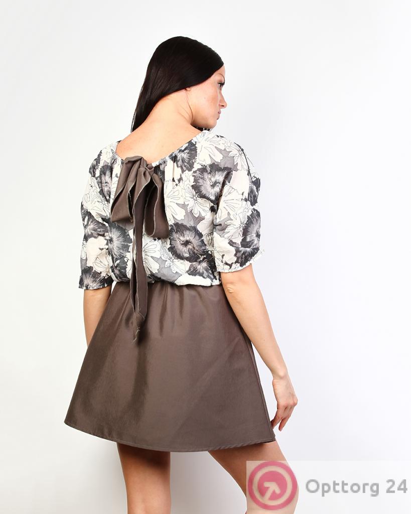 Платье женское с коричневой юбочкой и серым верхом оптом