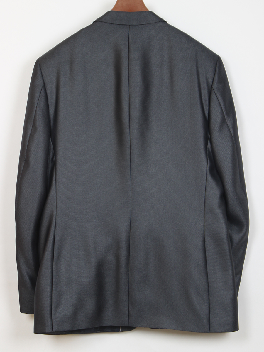 Костюм-двойка классический пиджак и брюки темно-серый с глянцевым отливом. Крой прямой.