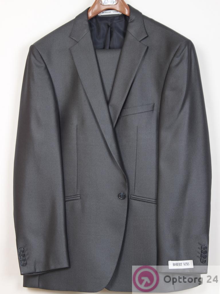 Костюм-двойка пиджак и брюки темно-серый с глянцевым отливом оптом