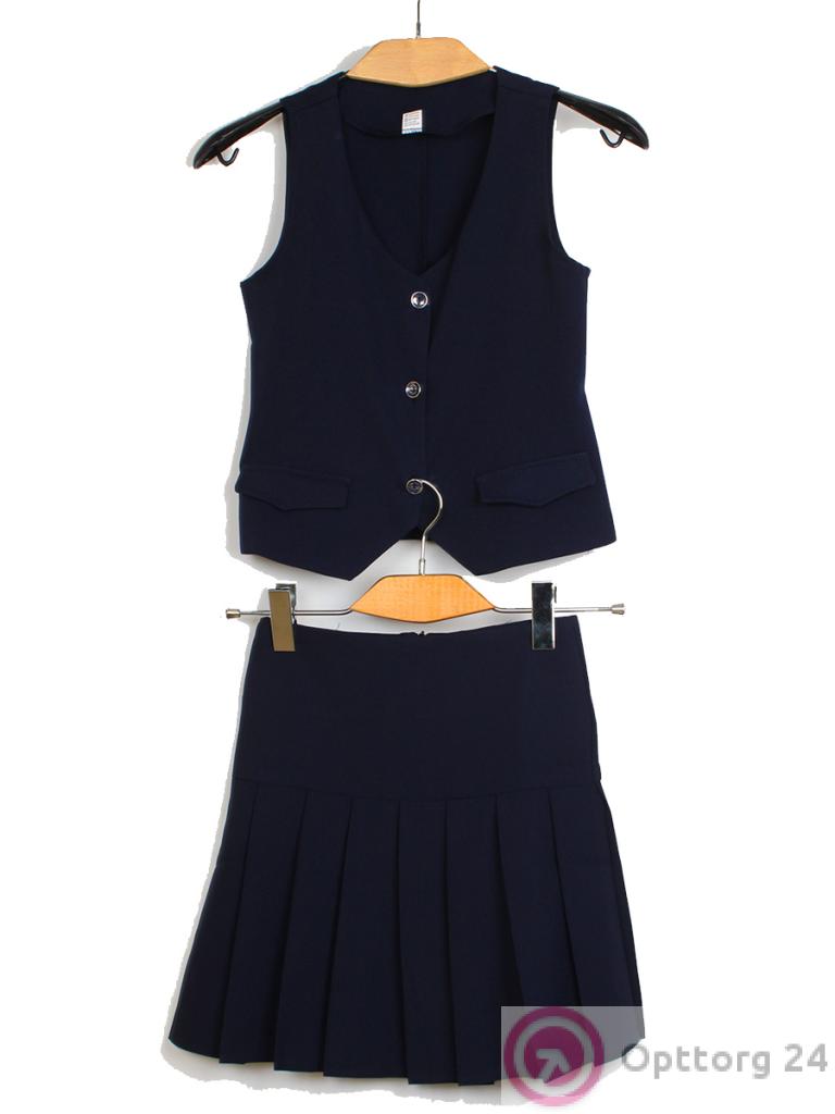 Костюм двойка школьный для девочки черный юбка+жилет оптом