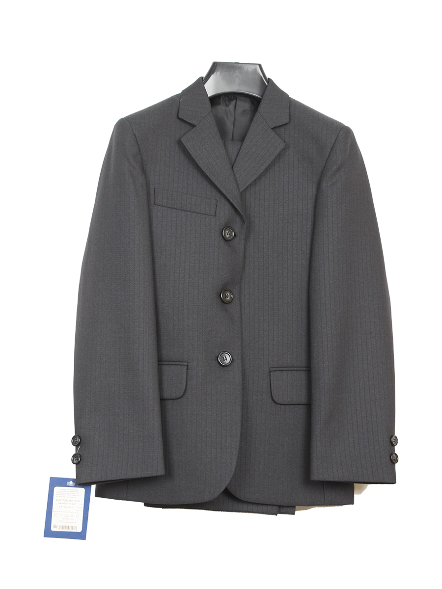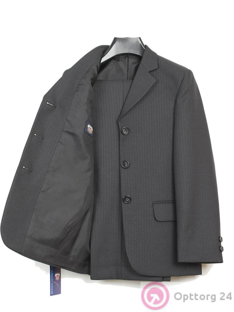 Костюм двойка школьный пиджак+брюки для мальчика темно-серый в серую полоску оптом